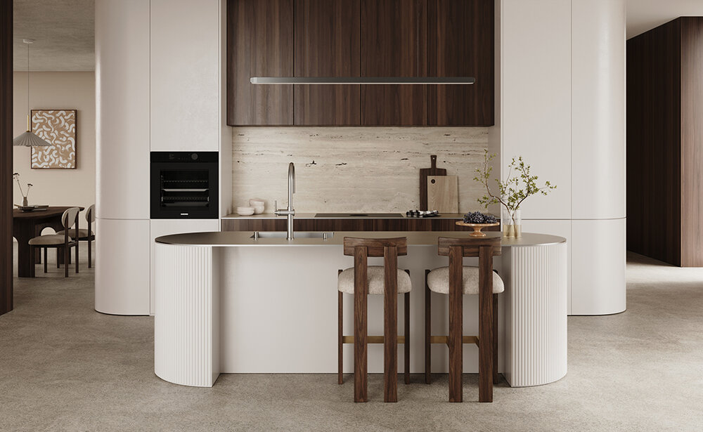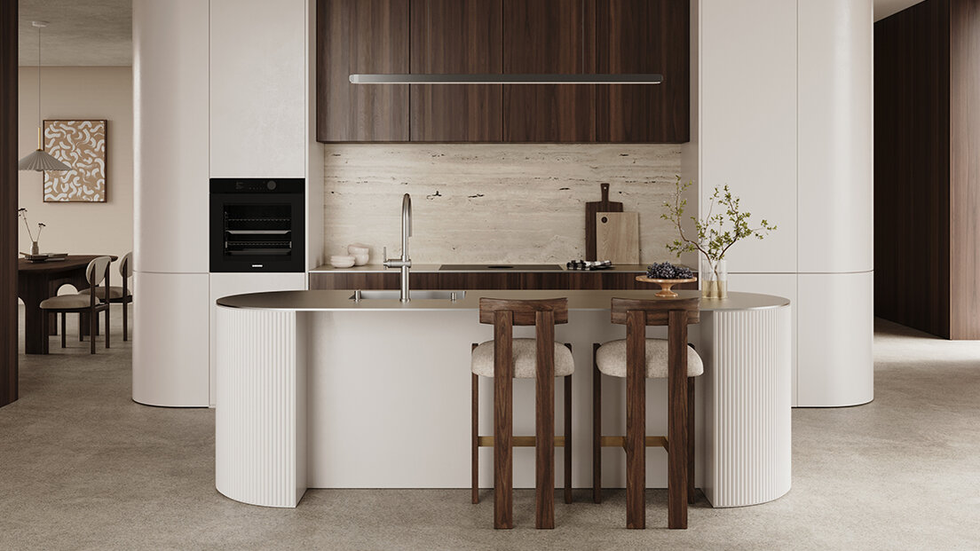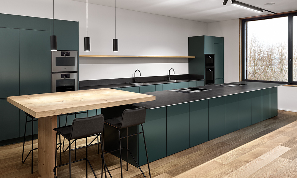 Die Wahl der Kantenausführung unterstreicht den Charakter Ihrer Küche und setzt individuelle Akzente. Der Kontrast zwischen Unterbaumöbel und Edelstahlfläche rückt die Kante ins Zentrum der Gestaltung. Sie verbindet das Design der Küche mit der Präzision unserer Manufaktur – harmonisch und stilprägend.