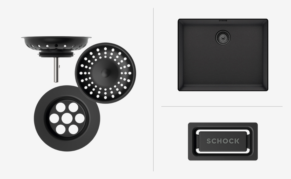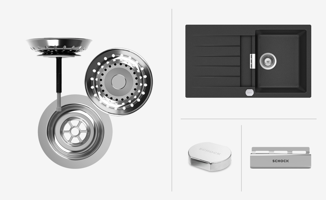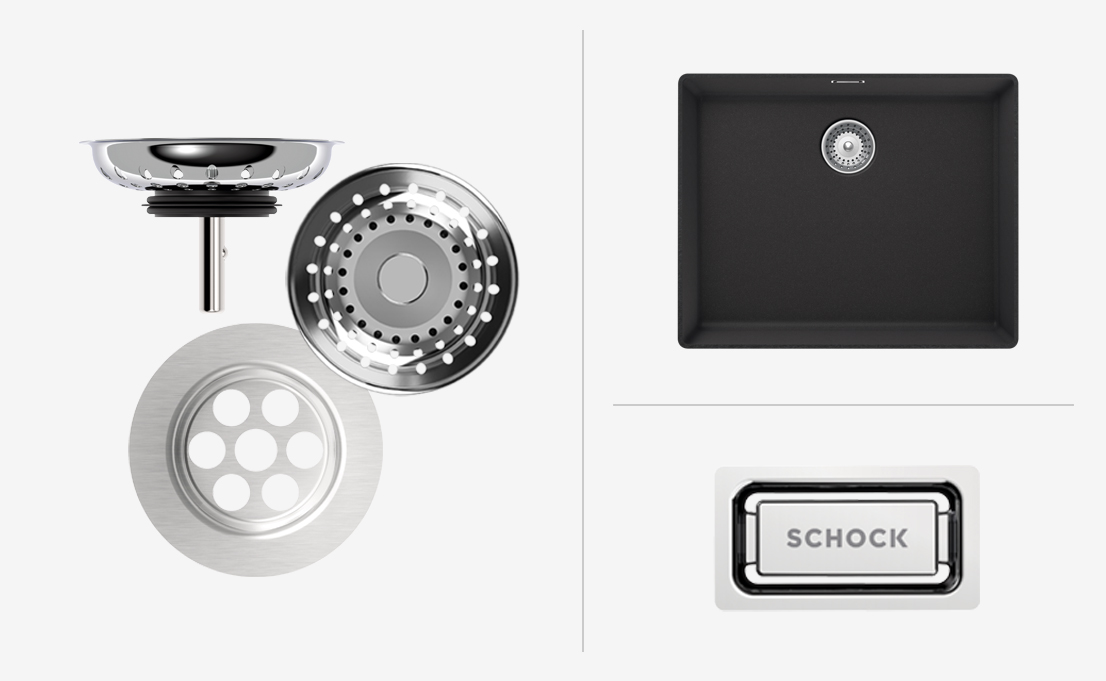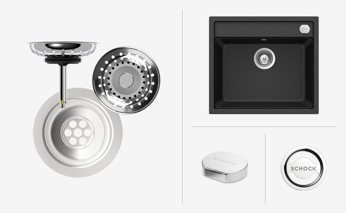 Spülen und Becken der Marke Schock in der Bedienvariante Siebstopfen sind mit einem Siebeinsatz mit integriertem Stopfen ausgestattet.