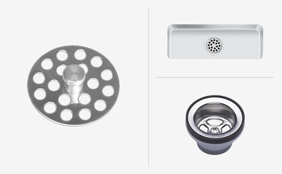 Je nach Modell des Beckens oder der Spüle hat das Sieb neun (Ablauf Typ M) oder zwölf (Ablauf Typ S) Schlitze. Passend zum Material des Wasserzentrums ist das Sieb im klassischen Edelstahl-Look oder mit schwarz matter DEC-Beschichtung erhältlich.
