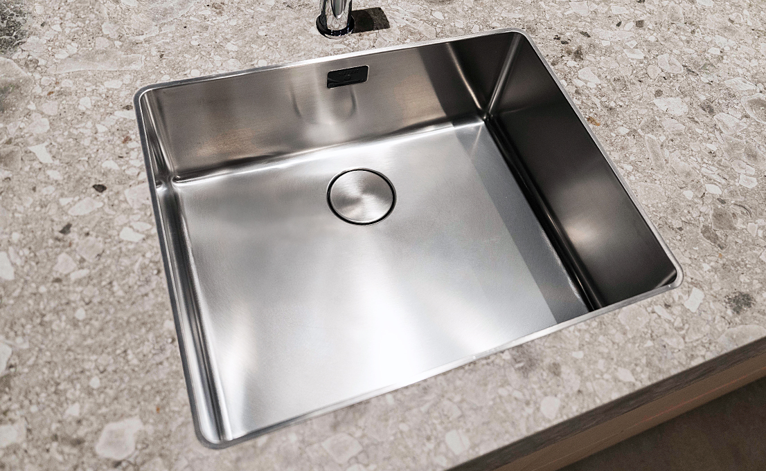 Die Becken werden stufenlos unterhalb der Arbeitsplatte montiert. Diese Einbauart vermittelt einen ruhigen Gesamteindruck und rückt die Arbeitsplatte ins Rampenlicht.
